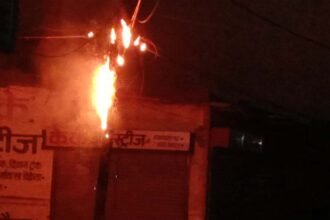 भिलाई ब्रेकिंग : सुपेला लक्ष्मी नगर मार्केट में बिजली के खंबे पर लगी आग, चपेट में आया दुकान