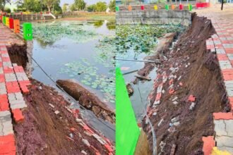 भिलाई-चरोदा निगम : 97 लाख से हो रहा था तालाब का सौंदर्यीकरण, आधे घंटे की बारिश नहीं झेल सकी दीवार