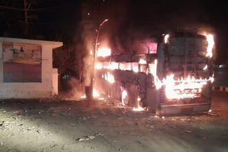 दुर्ग में सड़क पर खड़ी बस में लगी आग, पल भर में जल कर हुआ खाक…. जांच में जुटी पुलिस