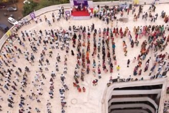 शहर के सबसे ऊंचे बिल्डिंग की टेरिस पर अधिकारियों और कर्मचारियों को दिलाई शपथ, दिव्यांग व थर्ड जेंडर भी हुए शामिल