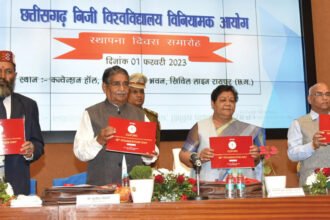 रायपुर। राज्यपाल एवं कुलाध्यक्ष सुश्री अनुसुईया उइके रायपुर के नवीन विश्रामभवन में आयोजित छत्तीसगढ़ निजी विश्वविद्यालय विनियामक आयोग के 18 वें स्थापना दिवस समारोह में शामिल हुईं। इस अवसर पर राज्यपाल ने आयोग की भूमिका का उल्लेख करते हुए कहा कि आयोग को राज्य में शिक्षा की स्थिति को बेहतर…