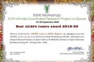 कृषि विश्वविद्यालय का रायगढ़ केन्द्र भारत के सर्वश्रेष्ठ मसाला अनुसंधान केन्द्र के रूप में हुआ सम्मानित
