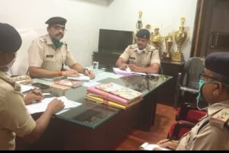 कोरोना से निबटने पुलिस लाइन में अफसरों की बैठक
