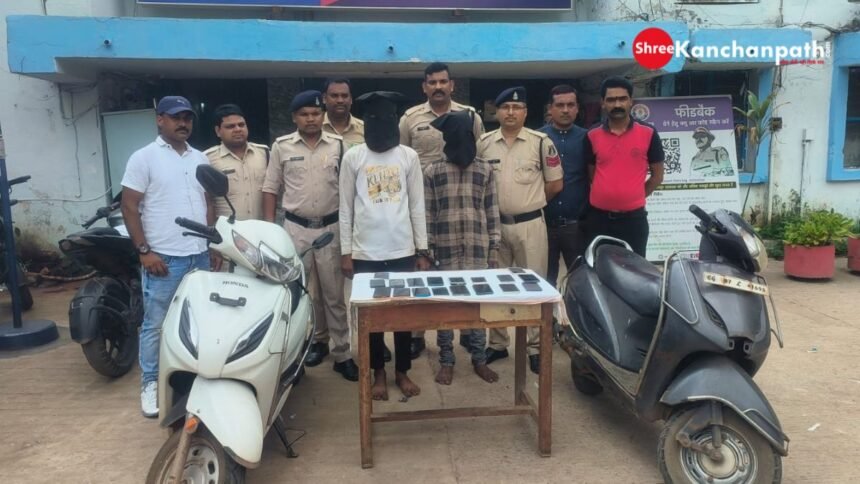भिलाई। सुपेला पुलिस ने लूट के आरोपियों को पकड़ने में सफलता मिली है। पुलिस दो आरोपियों से लूट के 20 मोबाइल व घटना में इस्तेमाल किए जाने वाले एक्टिवा को जब्त किया है। जब्त सामान की कीमत 5 लाख रुपएए बताई जा रही है। आरोपियों का लूट का तरीका अलग ही था। दरअसल यह दोनों सुबह टहलने वालों को टारगेट करते थे। पुलिस ने दोनों आरोपियों को गिरफ्तार कर न्यायिक रिमांड पर जेल भेज दिया।