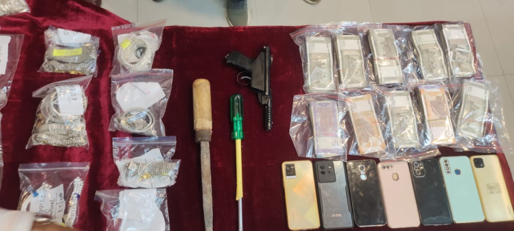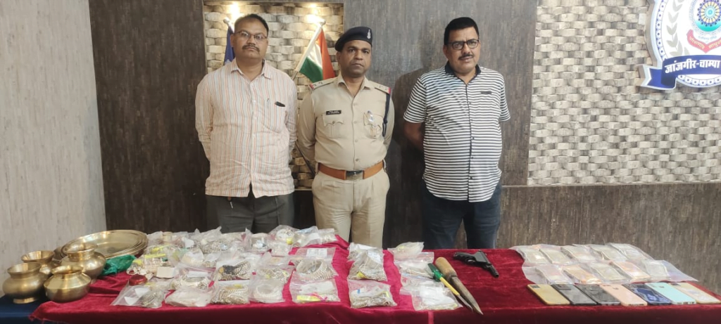जांजगीर-चांपा। छत्तीसगढ़ के जांजगीर-चांपा जिले में पुलिस ने एक ऐसा चोर गिरोह को पकड़ा है जिसने चार जिलों में कोहराम मचा रखा था। गिरोह के 8 सदस्यों को गिरफ्तार कर पुलिस ने इनके पास से 185 ग्राम सोना व 5 किलो 936 ग्राम चांदी जब्त किया है। जिसकी कीमत लगभग 14 लाख 6 हजार 750 रुपए है। यही नहीं इन बदमाशों के पास 4 लाख 13 हजार 430 लाख रुपए नगद, एक देशी कट्टा, ताला तोड़ने के औजार और तीन मोटर साइकिलें बरामद की हैं। इस गिरोह से पुलिस ने कुल 24 लाख 30 हजार 180 रुपए का मशरुका बरामद किया है। खासबात यह है पकड़े गए गिरोह में दो ज्वेलर्स भी हैं जो इनसे चोरी का माल खरीदते थे। इस मामले में रविवार को खुलासा किया गया।
