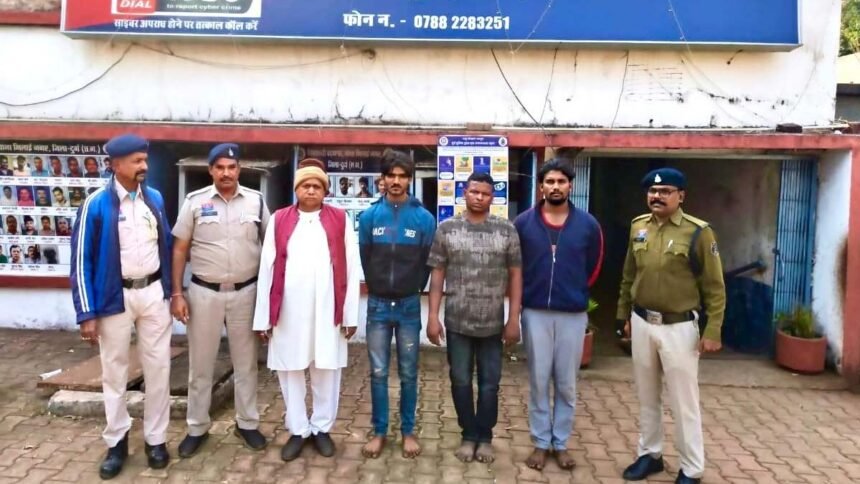 भिलाई। मॉर्निंग वॉक के दौरान दुर्ग जिले के चेन स्नेचिंग की घटनाओं को अंजाम देने वाले शातिर चोरों को पुलिस ने गिरफ्तार किया है। एक नाबालिग सहित कुल पांच आरोपियों को पुलिस ने धर दबोचा। इनके खिलाफ अलग अलग थानों में चेन स्नेचिंग के मामले दर्ज हैं। इनके पास से करीब 45 ग्राम सोने के चैन व लॉकेट कीमती 6 लाख बरामद बरामद किया गया। साथ ही घटना में प्रयुक्त 2 हीरो एचएफ डिलक्स व मैस्ट्रो कीमती 1 लाख जब्त किया गया।