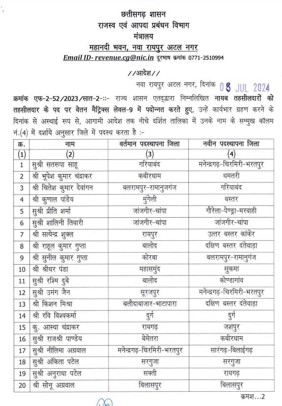 छत्तीसगढ़ के 58 नायब तहसीलादारों का प्रमोशन, राजस्व विभाग ने जारी किया आदेश… देखें पूरी लिस्ट