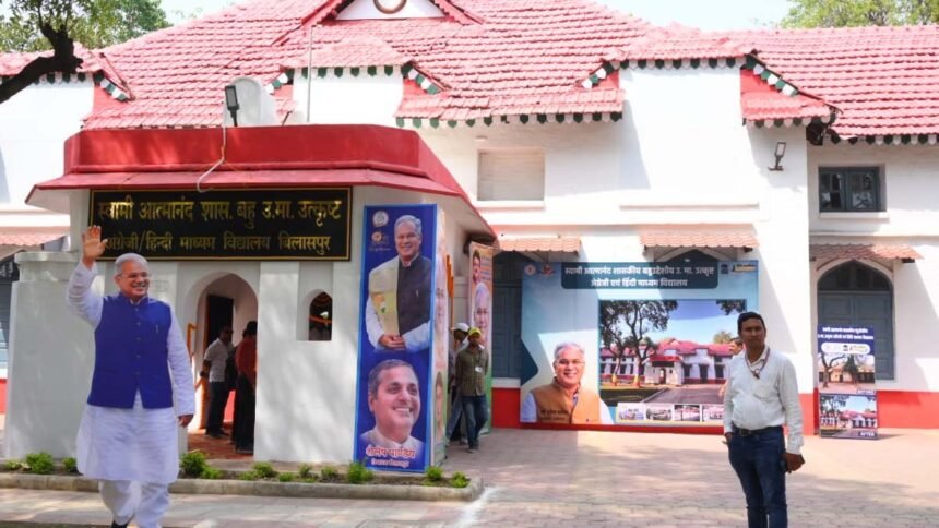बिलासपुर। मुख्यमंत्री भूपेश बघेल ने शनिवार को अपने बिलासपुर विधानसभा के भेंट-मुलाकात कार्यक्रम में दयालबंद स्थित स्वामी आत्मानंद शासकीय बहुउद्देशीय उच्चतर माध्यमिक उत्कृष्ट अंग्रेजी एवं हिन्दी माध्यम विद्यालय (मल्टीपरपज) का लोकार्पण किया। बच्चों के सर्वांगीण विकास के लिए 3 करोड़ 13 लाख रूपये की लागत से स्कूल भवन का उन्नयन किया गया है। स्कूल भवन में अत्याधुनिक लैब की सुविधा है। यहां स्मार्ट क्लास, भव्य प्रवेश द्वार, स्टेज, गार्डन, पार्किंग एवं नवीन टॉयलेट का निर्माण गया है।
