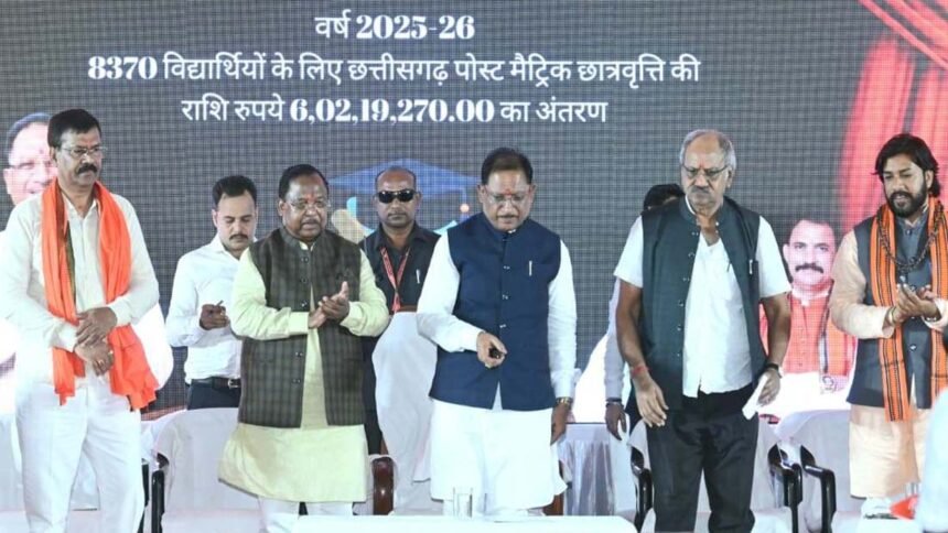मुख्यमंत्री विष्णु देव साय ने आदि सेवा पखवाड़ा के शुभारंभ अवसर पर आदिम जाति विकास, अनुसूचित जाति विकास तथा पिछड़ा वर्ग विभाग की योजनाओं के तहत प्रदेश के आश्रम-छात्रावासों में निवासरत 8,370 विद्यार्थियों को छात्रवृत्ति एवं भोजन सहायता योजना की राशि 6 करोड़ 2 लाख 19 हजार 270 रुपये का ऑनलाइन अंतरण उनके खातों में किया।
