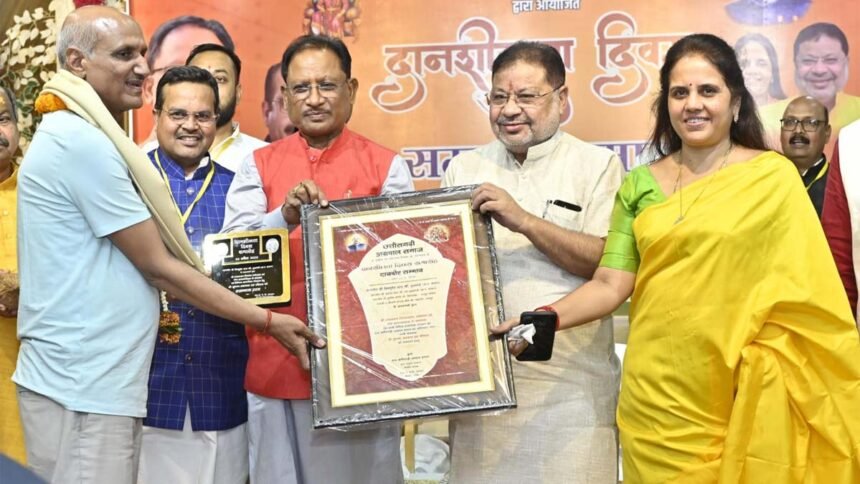 रायपुर। मुख्यमंत्री विष्णु देव साय राजधानी रायपुर में छत्तीसगढ़ी अग्रवाल समाज द्वारा दानशीलता दिवस पर आयोजित सम्मान एवं शपथ ग्रहण समारोह में शामिल हुए। उन्होंने इस दौरान छत्तीसगढ़ी अग्रवाल भवन में समाज द्वारा नवनिर्मित 200 सीटर ऑडिटोरियम का लोकार्पण और दान दाताओं का सम्मान भी किया। मुख्यमंत्री विष्णु देव साय ने अग्रवाल समाज की दानशीलता के कार्य की प्रशंसा करते हुए कहा कि मानवता की सेवा और दानशीलता के लिए अग्रवाल समाज हमेशा ही आगे रहा है।