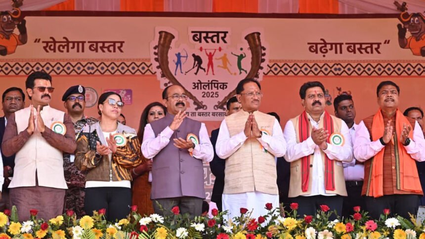 रायपुर। आपका मुख्यमंत्री आपके समाज के बीच का है, आपका भाई है….आप आगे बढ़ें, सरकार हर कदम पर आपके साथ खड़ी है। मुख्यमंत्री विष्णुदेव साय ने गुरुवार को बस्तर ओलिंपिक 2025 के तहत संभाग स्तरीय प्रतियोगिता के शुभारंभ के अवसर पर संबोधित करते हुए यह बात कही। मुख्यमंत्री साय ने जगदलपुर के स्थानीय इंदिरा प्रियदर्शिनी स्टेडियम में संभाग स्तरीय बस्तर ओलिंपिक का विधिवत शुभारंभ किया। उन्होंने समूचे बस्तर संभाग के खिलाड़ियों का उत्साहवर्धन किया। इस दौरान बस्तर संभाग के सभी सातों जिलों के खिलाड़ियों ने आकर्षक मार्चपास्ट प्रस्तुत कर दर्शकों को मंत्रमुग्ध कर दिया।