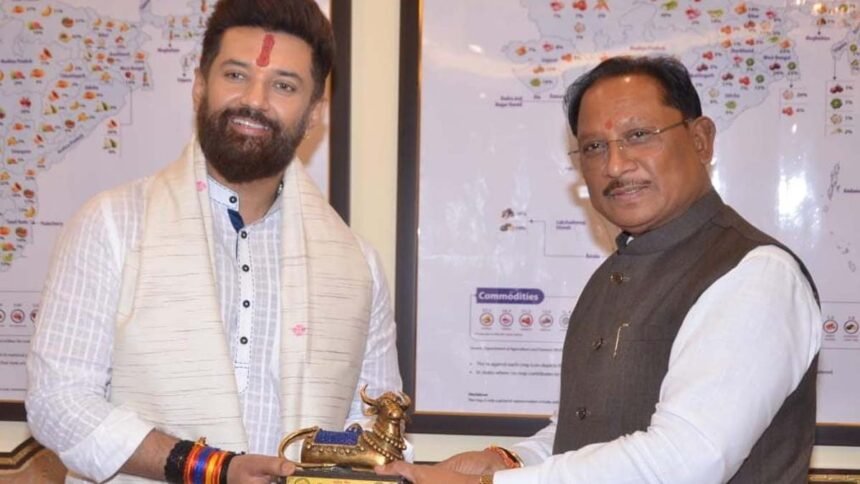 रायपुर। मुख्यमंत्री विष्णुदेव साय ने सोमवार को नई दिल्ली में केंद्रीय खाद्य एवं उपभोक्ता मामलों के मंत्री श्री चिराग पासवान से उनके कार्यालय में सौजन्य मुलाकात की। इस दौरान छत्तीसगढ़ से जुड़े अनेक जनहित विषयों पर रचनात्मक और सार्थक चर्चा हुई। मुख्यमंत्री श्री साय ने विशेष रूप से राज्य में खाद्य सुरक्षा, कृषि-आधारित उद्योगों और फूड प्रोसेसिंग सेक्टर से जुड़े महत्वपूर्ण मुद्दों पर ध्यान आकर्षित किया।