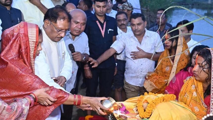जशपुर। मुख्यमंत्री विष्णु देव साय एवं उनकी धर्मपत्नी कौशल्या साय ने आज छठ महापर्व के अवसर पर दुलदुला छठ घाट में पहुँचकर सूर्य को अर्घ्य अर्पित किया और प्रदेश की सुख-समृद्धि तथा खुशहाली की कामना की। मुख्यमंत्री साय ने प्रदेशवासियों को छठ पूजा की हार्दिक बधाई एवं शुभकामनाएँ दीं। उन्होंने कहा कि यह अत्यंत सौभाग्य का अवसर है कि मुझे छठ पर्व में सम्मिलित होने का अवसर मिला।