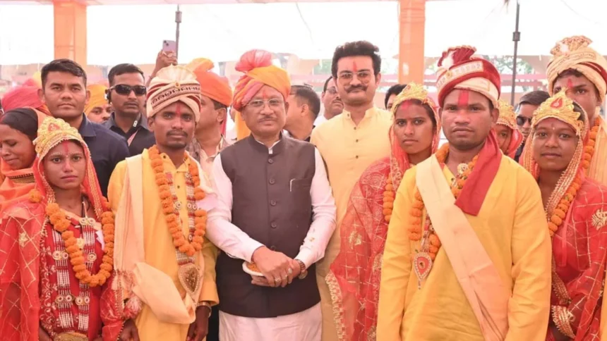 मुख्यमंत्री साय ने नवदंपतियों को 35 हजार रुपए की राशि के चेक वितरित किए और उनके खुशहाल वैवाहिक जीवन की कामना की। सामूहिक विवाह कार्यक्रम में गायत्री परिवार के सदस्यों द्वारा वैदिक मंत्रोच्चार एवं विधि-विधान से विवाह सम्पन्न कराया गया। कार्यक्रम में नवदंपतियों को विवाह प्रमाण पत्र एवं उपहार सामग्री भी प्रदान की गई। इस अवसर पर उपस्थित जनप्रतिनिधियों ने भी नवविवाहित जोड़ों को शुभकामनाएं दीं और योजना की सराहना की। यह आयोजन न केवल एक सामाजिक कार्यक्रम रहा, बल्कि शासन की जनकल्याणकारी सोच और समाज के कमजोर वर्गों के प्रति संवेदनशीलता का भी प्रतीक बना।