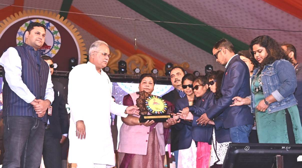 राज्यपाल सुश्री अनुसुईया उइके और मुख्यमंत्री श्री भूपेश बघेल ने आज युवा महोत्सव में ’मोर रायपुर-स्वच्छ रायपुर’ गीत गाने वाले दिव्यांग बच्चों सुमन यादव, रूपवर्षा, वसुंधरा और अभिनन्दन को प्रतीक चिन्ह देकर सम्मानित किया। इन बच्चों ने समारोह में इस गीत की प्रस्तुति दी। ये चारों बच्चे शासकीय दृष्टि एवं श्रवण बाधित विद्यालय मठपुरेना के हैं।