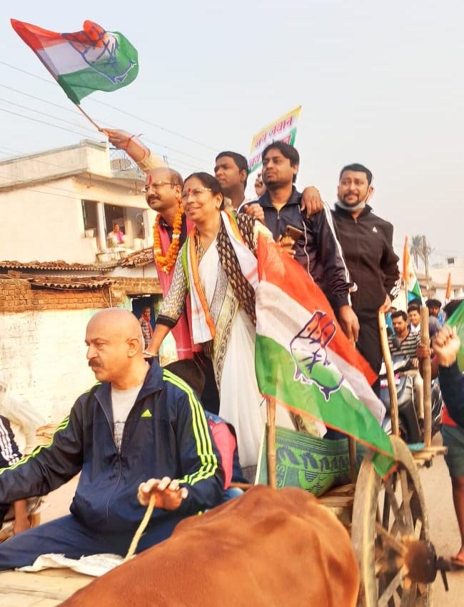 जय जवान जय किसान के उद्घोष के साथ बैलगाड़ी में कांग्रेसियों ने निकाली पदयात्रा