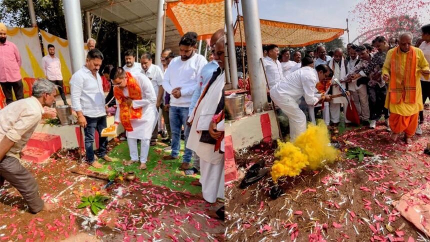भिलाई। लालमैदान पावर हाउस के पवित्र प्रांगण में डोम शेड का निर्माण शुरू हो गया। सोमवार को वैशालीनगर विधानसभा के विधायक रिकेश सेन द्वारा मातारानी के शारदीय नवरात्र उत्सव हेतु मुख्य भव्य डोमशेड निर्माण के लिए भूमिपूजन किया गया। मातारानी के मुख्य भव्य डोमशेड निर्माण व विभिन्न विकास कार्यों के भूमिपूजन का कार्यक्रम समिति के आचार्य बृजवासी महाराज द्वारा पूरे विधि-विधान से संपन्न कराया गया जिसमें समिति के समस्त पूजा प्रभारीगण, समिति के अध्यक्ष, महामंत्री, उपाध्यक्ष, संरक्षकगण सहित समस्त सम्माननीय सदस्यगण उपस्थित रहे। भूमिपूजन के बाद विधायक रिकेश के हाथों मातारानी के भक्तों व श्रद्धालुओं को मातारानी के भंडारे का हलवा प्रसाद वितरण किया गया।