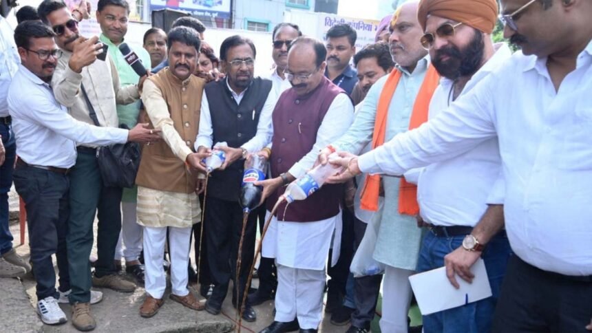 भिलाई। उप मुख्यमंत्री अरुण साव शुक्रवार को दुर्ग में स्वदेशी सुरक्षा एवं स्वावलंबन अभियान कार्यक्रम में शामिल हुए। उन्होंने इस दौरान पंडित दीनदयाल उपाध्याय की प्रतिमा पर माल्यार्पण कर श्रद्धांजलि अर्पित की। श्री साव ने कार्यक्रम में कोका-कोला, पेप्सी जैसी विदेशी पेय सामग्रियों को प्रतीकात्मक रूप से नाली में बहाकर विदेशी वस्तुओं के बहिष्कार का आह्वान किया।