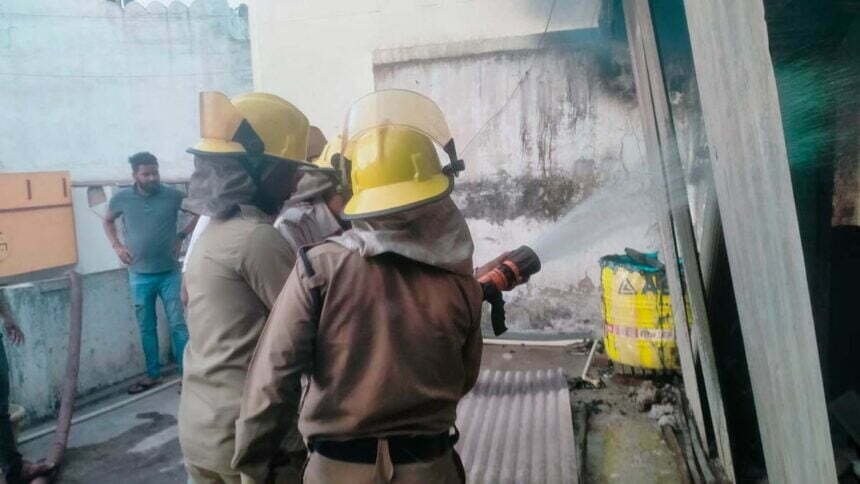मिली जानकारी के अनुसार दुर्ग के शनिचरी बाजार के मोहल्ला स्थित केदार गुप्ता के घर में आग लग गई। आग कैसे लगी इसका कारण पता नहीं चला। बताया जा रहा है कि शार्ट सर्किट के कारण यह आग लगी। देखते ही देखते आग फैलने लगी। शाम करी 5 बजे अग्निशमन एवं आपातकालीन सेवाओं के कार्यालय को सूचना मिली। सूचना मिलते ही आपदा प्रबंधन की टीम तुरंत मौके पर रवाना किया। मौके पर पहुंची टीम को ने ढ़ाई घंटे की मशक़्क़त के बाद आग पर क़ाबू पाया। इस पूरी कार्रवाई में जिला अग्निशमन अधिकारी नागेन्द्र कुमार सिंह अग्निशमन कर्मी धनु राम यादव, संतोष मढरिया, नरोत्तम टंडन, मोहनराव, जागेन्द्र मार्कंडेय, रमेश कुमार का काम सराहनीय रहा।