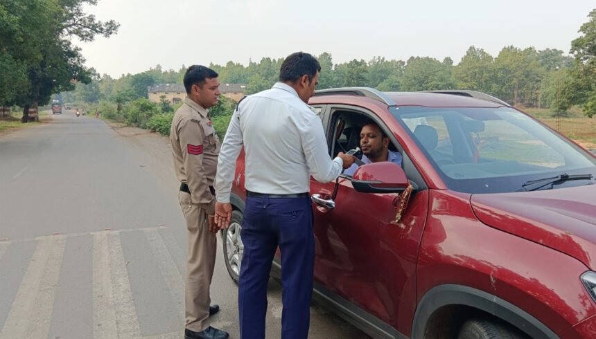 जशपुर। छत्तीसगढ़ के जशपुर जिले में बढ़ती सड़क दुर्घटनाओं को देखते हुए पुलिस ने महाचेकिंग अभियान चलाया। जिला पुलिस के साथ ही यातायात पुलिस व राजपत्रित सड़क पर उतरे। एक ही दिन में पूरे जिले में अभियान चलाकर MV एक्ट के कुल 767 प्रकरण में 307900 रुपए का चालान काटा गया। इस दौरान शराब पीकर वाहन चला रहे 11 प्रकरण में न्यायालय पेश किया गया जिसमें लायसेंस निलंबित करने की प्रकिया की जा रही है। इस साल अब तक जिले में कुल 8367 प्रकरण में 31,58,600 रुपए जुर्माना वसूल किया गया।