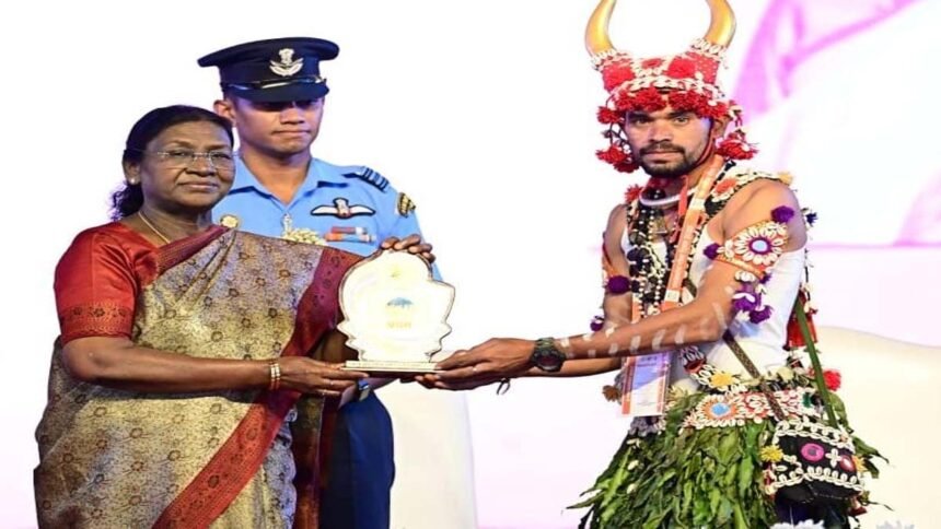 रायपुर। जनजातीय गौरव दिवस 2025 पर सरगुजा जिला मुख्यालय अंबिकापुर में आयोजित राज्य स्तरीय शहीद वीर नारायण सिंह स्मृति लोक कला महोत्सव में कोंडागांव जिले की लिंगों घोटुल मांदरी नृत्य दल ने शानदार प्रदर्शन करते हुए प्रथम स्थान हासिल किया। समारोह की मुख्य अतिथि देश की राष्ट्रपति द्रौपदी मुर्मु के हाथों को प्रथम स्थान प्राप्त करने वाले जिले की मांदरी नृत्य दल को सम्मान मिला। कलेक्टर नूपुर राशि पन्ना ने टीम को शुभकामनाएं देते हुए कहा कि “लिंगों घोटुल मांदरी नृत्य दल ने अपनी मेहनत, प्रतिभा और अनुशासन से जिले का नाम पूरे राज्य में रोशन किया है। यह उपलब्धि हमारे समृद्ध जनजातीय कला-संस्कृति और जिले के कलाकारों की प्रतिभा को प्रदर्शित करती है।”