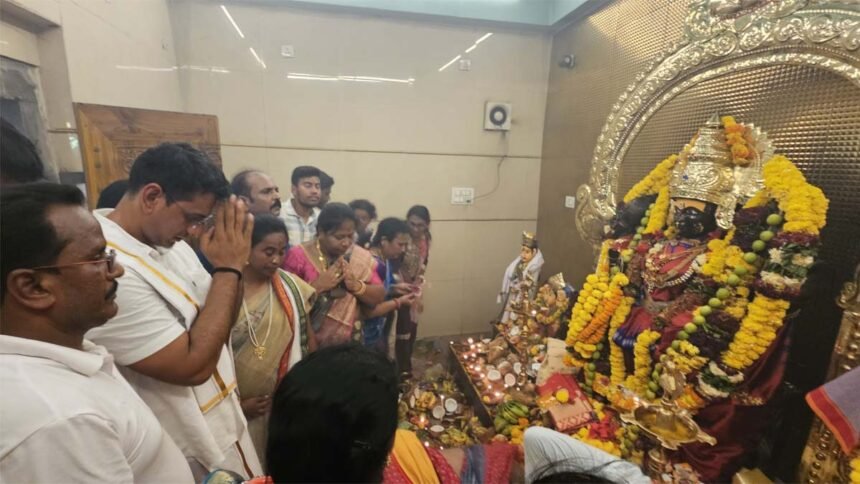 भिलाई। आंध्रप्रदेश के श्रीकाकुलम जिले के तटवर्ती गांव मेट्टूरु में श्री श्री श्री माता कोण्ड महांकाली माता का उत्साव मनाया जा रहा है। माता के संबरालू में भिलाई नगर विधायक देवेन्द्र यादव भी शामिल हुए। एक दिन पहले ही वे अहमदाबाद पुरी एक्सप्रेस से रवाना हुए थे। मंगलवार को पलासा पहुंचने के बाद उन्होंने स्थानीय लोगों से मुलाकात की और संबरालू में शामिल होकर पूजा अर्चना करते हुए माता का आशीर्वाद लिया।