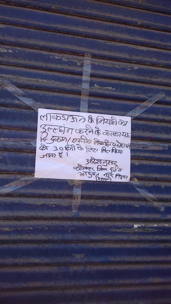 आजाद मार्केट में सुपेला निवासी फिरोज द्वारा जूता चप्पल दुकान लगाने पर कड़ी फटकार लगाते हुए प्रतिष्ठान को बंद कराया गया। दुकान में ग्राहकों की लंबी कतार व भीड़ थी। सोशल डिस्टेंस का पालन भी नहीं किया जा रहा था। इसके अलावा फुटकर व्यापारियों को भी निर्धारित समय के बाद व्यापार न करने की हिदायत दी गई।