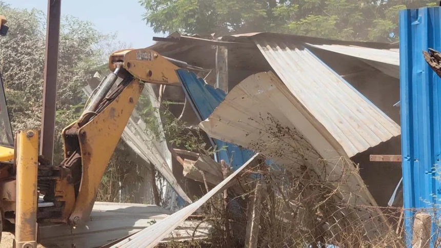 भिलाई । अफीम की खेती मामले में गिरफ्तार विनायक ताम्रकार के अवैध कब्जे पर आज प्रशासन ने बुलडोजर चलवा दिया। समोदा गांव में दुर्ग – धमधा रोड के सरकारी जमीन पर कब्जा कर ताम्रकार ने खेतों के बाउंड्री वॉल में इस्तेमाल किए जाने वाले सीमेंट पोल की फैक्ट्री डाल रखी थी। लगभग 32 डिसमिल यह जमीन सरकारी रिकॉर्ड में घास जमीन के रुप में दर्ज है।