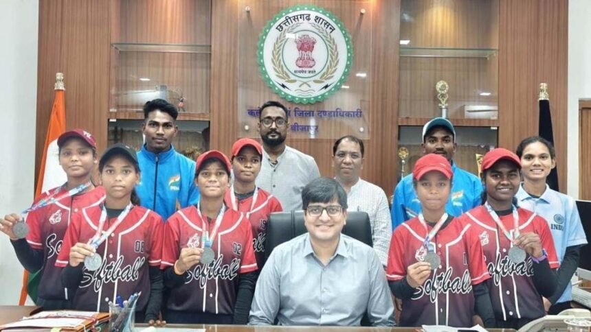 बीजापुर। छत्तीसगढ़ के सुदूर वनांचल बीजापुर के खिलाड़ियों ने चंडीगढ़ में आयोजित जूनियर नेशनल सॉफ्टबॉल प्रतियोगिता में विजय प्राप्त कर राज्य का नाम देश मे रोशन किया है। बीजापुर की गर्ल्स टीम ने इस प्रतियोगिता में ब्रॉन्ज मेडल प्राप्त किया है। उल्लेखनीय है कि छत्तीसगढ़ राज्य के लिए गठित टीम में बीजापुर जिले से 6 खिलाड़ियों का चयन हुआ था। इन खिलाड़ियों में अनुराधा कोवासी ,अस्मिता मरपल्ली, ज्योति ओयाम ,रिंकी हेमला, लक्ष्मी बघेल और पूजा कोरसा शामिल है। इन सभी 6 खिलाड़ी ने छत्तीसगढ़ को पदक प्राप्त करने में उत्कृष्ट खेल का प्रदर्शन कर जीत दिलाने में अहम भूमिका निभाई।