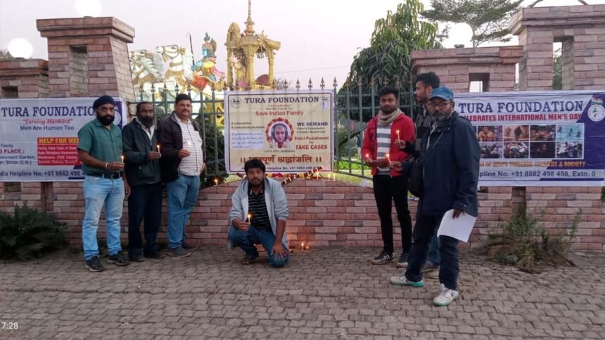 भिलाई। टूरा फाउंडेशन के सदस्यों ने बैंगलुरू में पत्नी की प्रताड़ना से तंग आकर खुदकुशी करने वाले एआई इंजीनियर अतुल सुभाष को न्याय दिलाने की मांग लेकर रविवार को सिविक सेंटर भिलाई में कैंडल मार्च निकाला। इस दौरान सदस्यों ने अतुल की आत्मा की शांति के लिए उन्हें न्याय दलाने केंद्र व राज्य सरकारों से, उच्च न्यायालय एवं उच्चतम न्यायालय से मांग की है कि एकपक्षीय कानूनों में संसोधन किया जाए।