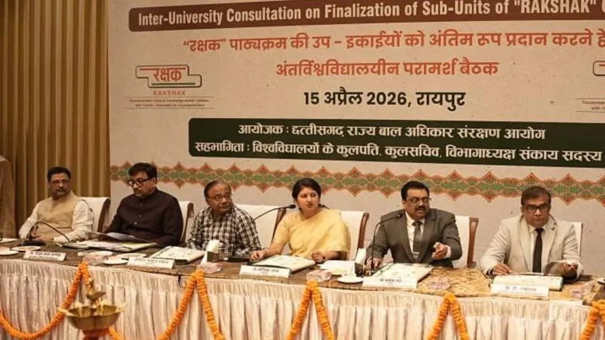 रायपुर। छत्तीसगढ़ राज्य बाल अधिकार संरक्षण आयोग द्वारा राज्य में “रक्षक (RAKSHAK) पाठ्यक्रम” को प्रभावी रूप से लागू करने की दिशा में महत्वपूर्ण पहल की जा रही है। इस विशेष शैक्षणिक कार्यक्रम का उद्देश्य महाविद्यालयीन विद्यार्थियों के माध्यम से बाल अधिकारों के प्रति जागरूकता बढ़ाना, बच्चों की सुरक्षा सुनिश्चित करना और समाज में बाल संरक्षण के प्रति संवेदनशीलता विकसित करना है।