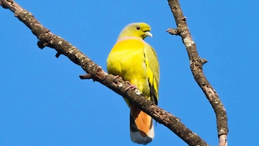 रायपुर। बारनवापारा अभयारण्य से पक्षी प्रेमियों और पर्यावरणविदों के लिए एक बेहद सुखद खबर सामने आई है। हाल ही में अभ्यारण्य में आयोजित बर्ड सर्वे के दौरान दुर्लभ ‘ऑरेंज-ब्रेस्टेड ग्रीन-पिजन’ (ट्रेरॉन बाइसिंक्टस) की उपस्थिति दर्ज की गई है।