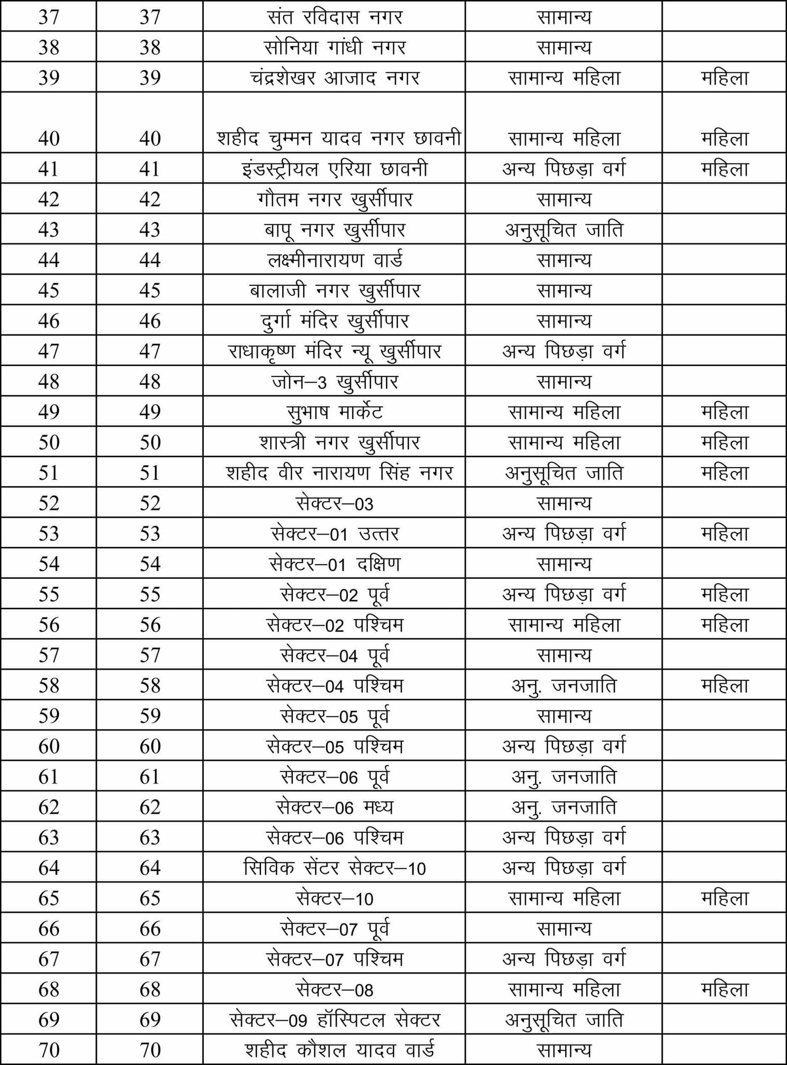 वार्ड 58 सेक्टर 4 पश्चिम एसटी महिला