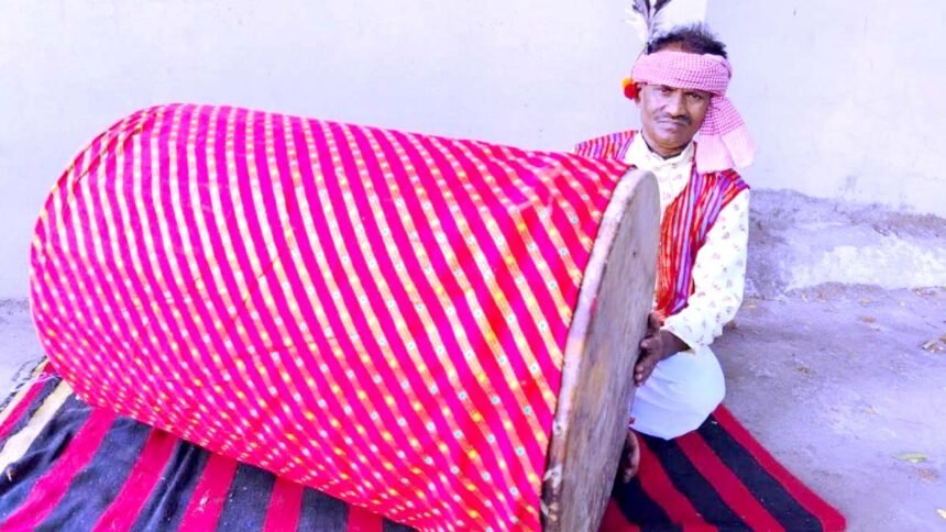 भिलाई। इस्पात नगरी के प्रख्यात लोकवाद्य संग्राहक रिखी क्षत्रिय बस्तर संभाग के बीजापुर जिले से देश का सबसे बड़ा ढोल लेकर आए हैं। मरोदा सेक्टर स्थित कुहूकी कला ग्राम में यह विशालकाय ढोल पहुंच चुका है। रिखी क्षत्रिय पांच दशक से दुर्लभ लोक वाद्ययंत्रों का संग्रह कर रहे हैं। रिखी का कहना है कि अपनी 5 दशक की खोजयात्रा में पहली बार उन्होंने इतना बड़ा ढोल देखा है।