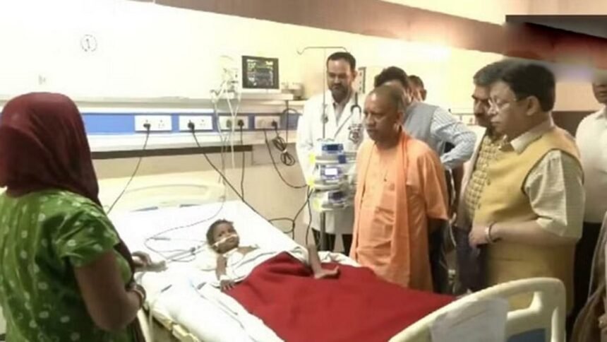 #WATCH | Lucknow: Uttar Pradesh CM Yogi Adityanath meets the child in the hospital, who was injured in yesterday's shootout where gangster Sanjeev alias Jeeva was killed pic.twitter.com/CKs9TY2gRP