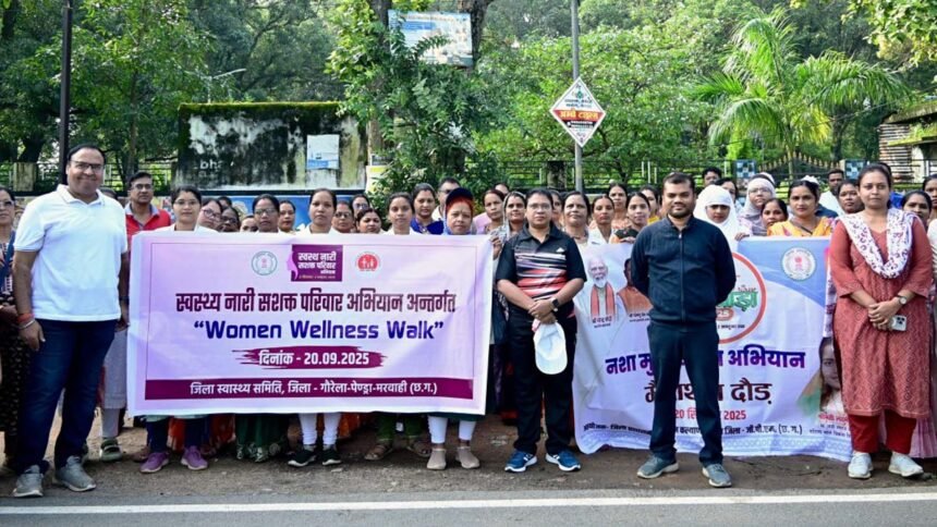 जीपीएम। देश के यशस्वी प्रधानमंत्री नरेंद्र मोदी के 75 वें जन्म दिवस के अवसर पर 17 सितंबर से 2 अक्टूबर तक सेवा पखवाड़ा मनाया जा रहा है। इसी अभियान के अंतर्गत गौरेला-पेंड्रा-मरवाही जिले में ‘‘स्वस्थ नारी, सशक्त परिवार अभियान‘‘ के तहत आज महिलाओं के स्वास्थ्य और जागरूकता को ध्यान में रखते हुए ‘‘वूमेन वेलनेस वॉक‘‘ का आयोजन किया गया। कार्यक्रम की शुरुआत कलेक्टर लीना कमलेश मंडावी के नेतृत्व में की गई, जिन्होंने कार्यक्रम में उपस्थित सभी अधिकारी-कर्मचारियों और महिलाओं को स्वस्थ रहने और अपने परिवार को सशक्त बनाने की शपथ दिलाई।