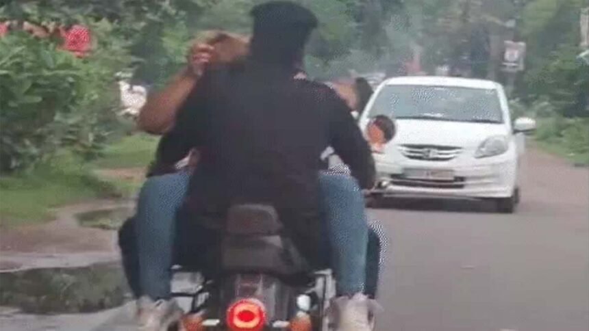 बता दें यातायात विभाग की लाख कोशिशों के बाद भी सड़कों पर नियमों की अवहेलना जारी है। बिना हेलमेट के बाइक पर चलना आम बात है लेकिन सेक्टर-10 के अंधरूनी सड़क पर युवक-युवती की बेशर्मी चर्चा का विषय बना हुअ है। बाइक पर युवती अपने साथी को पकड़कर रोमांटिक अंदाज में झूम रही है। ट्रैफिक नियमों की परवाह किए बिना सड़क पर घूम रहे थे। वीडियो सोशल मीडिया पर शेयर होने के बाद लोगों ने नाराजगी जताई है। वहीं इस मामले में एएसपी ट्रैफिक ऋचा मिश्रा ने कहा है कि यातायात के नियमों का खुला उल्लंघन किया गया है। इनके खिलाफ ट्रैफिक पुलिस और संबंधित थाना पुलिस को आवश्यक कार्रवाई के लिए निर्देश दिए गए हैं।
