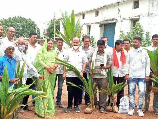 State Congress General Secretary Jitendra Sahu distributed coconut plants and pigeonpea seeds