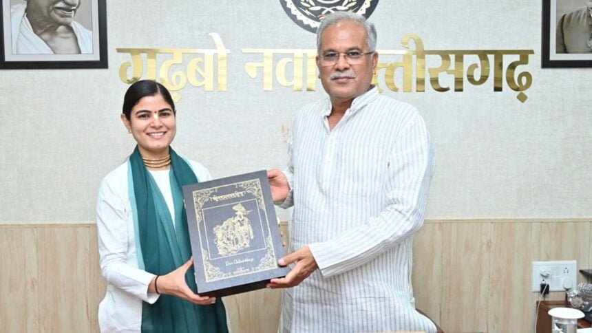 रायपुर। मुख्यमंत्री भूपेश बघेल से गुरुवार शाम यहां उनके निवास कार्यालय में सुप्रसिद्ध कथावाचक देवी चित्रलेखा ने सौजन्य मुलाकात की। देवी चित्रलेखा से चर्चा के दौरान मुख्यमंत्री ने उन्हें छत्तीसगढ़ में गौ-माता के संरक्षण और संवर्धन के लिए चलाई जा रही गोधन न्याय योजना की जानकारी दी। देवी चित्रलेखा ने सरकार के इस प्रयास की सराहना की। इस अवसर पर उन्होंने मुख्यमंत्री बघेल को खुद की लिखी हुई श्रीमद् भगवद् गीता की पुस्तक भी भेंट की।