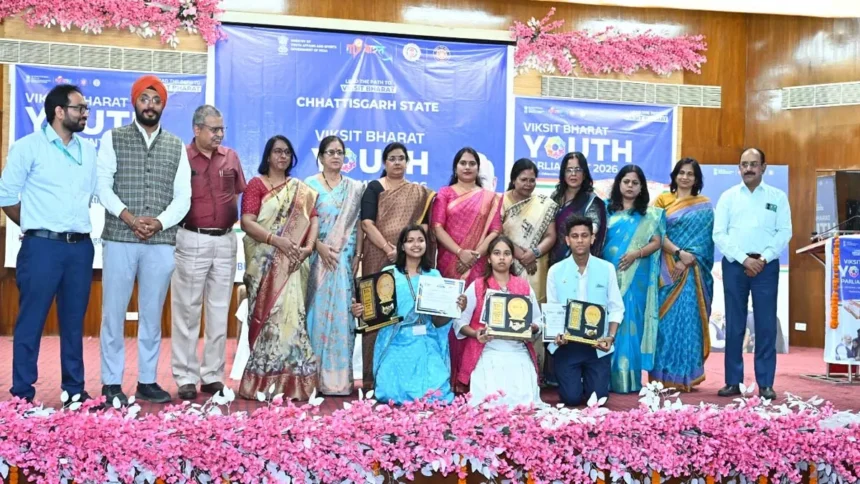 रायपुर। माय भारत द्वारा युवा कार्यक्रम एवं खेल मंत्रालय, भारत सरकार के तत्वावधान में ऐतिहासिक पुरानी छत्तीसगढ़ विधानसभा में राज्य स्तरीय “विकसित भारत युवा संसद 2026” का आयोजन किया गया। कार्यक्रम का उद्देश्य युवाओं को लोकतांत्रिक प्रक्रिया से जोड़ना, राष्ट्रीय नीतियों पर शोध-आधारित विचार-विमर्श को प्रोत्साहित करना तथा विकसित भारत @2047 के राष्ट्रीय संकल्प में युवाओं की सक्रिय भागीदारी सुनिश्चित करना है। कार्यक्रम का उद्घाटन बाबा खुशवंत साहेब, मंत्री, कौशल विकास, तकनीकी शिक्षा एवं रोजगार, छत्तीसगढ़ शासन द्वारा किया गया। अपने संबोधन में उन्होंने कहा कि युवाओं द्वारा प्रस्तुत तथ्यपरक और शोध-आधारित विचार आज की नीति-निर्माण प्रक्रिया को नई दिशा दे रहे हैं। उन्होंने कहा कि प्रधानमंत्री के विकसित भारत @2047 के लक्ष्य को साकार करने में युवाओं की सक्रिय सहभागिता अत्यंत महत्वपूर्ण है।