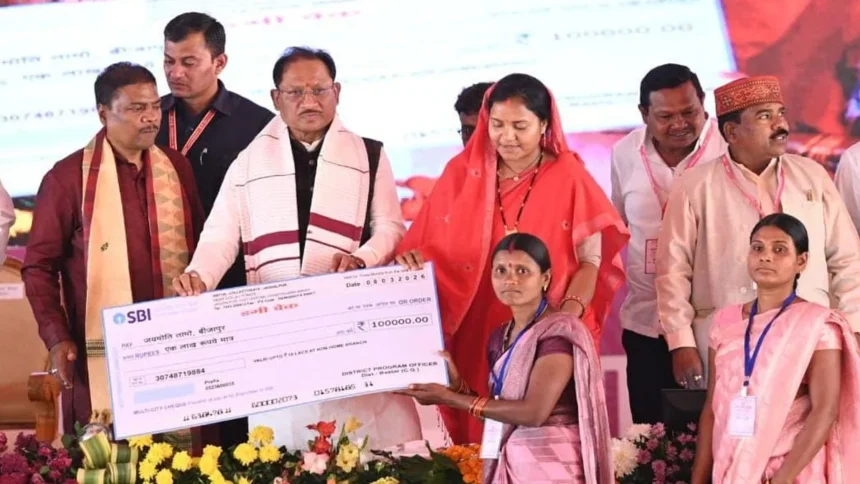 मुख्यमंत्री विष्णु देव साय ने इस अवसर पर महतारी वंदन योजना की 25वीं किश्त जारी करते हुए प्रदेश की 69 लाख 48 हजार महिलाओं के खातों में 641 करोड़ 58 लाख रुपये अंतरित किए। इसके साथ ही इस योजना के अंतर्गत अब तक महिलाओं को 16 हजार 237 करोड़ रुपये की राशि प्रदान की जा चुकी है। उन्होंने कहा कि यह योजना केवल आर्थिक सहायता का माध्यम नहीं, बल्कि माताओं-बहनों के आत्मविश्वास, सम्मान और आत्मनिर्भरता को मजबूत करने वाला जनकल्याणकारी अभियान बन चुकी है।
