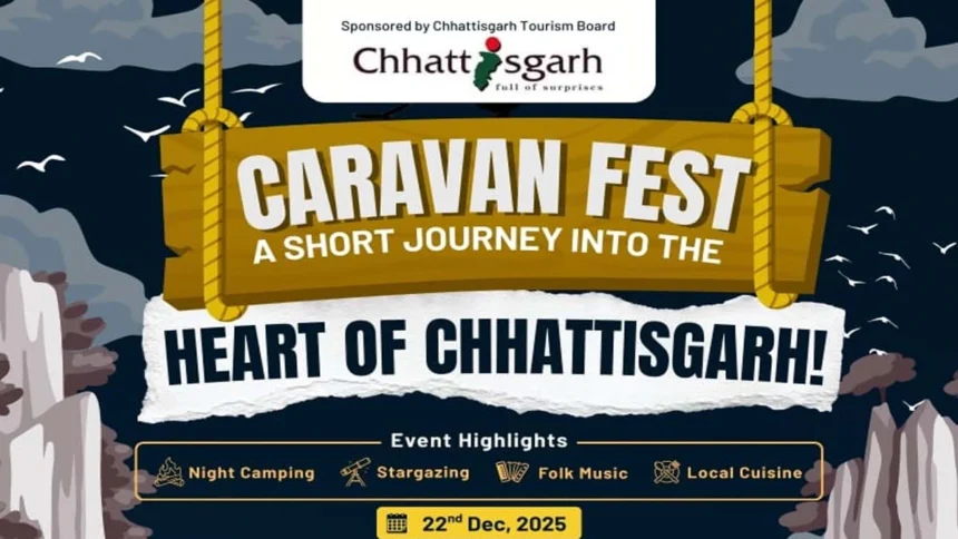 रायपुर। छत्तीसगढ़ पर्यटन को नए आयाम देने की दिशा में एक अनूठी पहल के रूप में “कैरा वैन फेस्ट‘‘ का आयोजन 22 दिसंबर 2025 को अरन्यम्म रिसॉर्ट, माना बस्ती, माना तूता रोड, रायपुर में किया जा रहा है। यह आयोजन छत्तीसगढ़ टूरिज्म बोर्ड के प्रायोजन में तथा ओवरलैंडर एसोसिएशन ऑफ इंडिया के सहयोग से संपन्न होगा। इस आयोजन की थीम ‘अ शार्ट जर्नी इन टू द हार्ट ऑफ छत्तीसगढ़‘‘है। शाम 4 बजे से 8 बजे तक चलने वाले इस विशेष फेस्टिवल में एडवेंचर, नेचर और संस्कृति का अनोखा संगम देखने को मिलेगा।