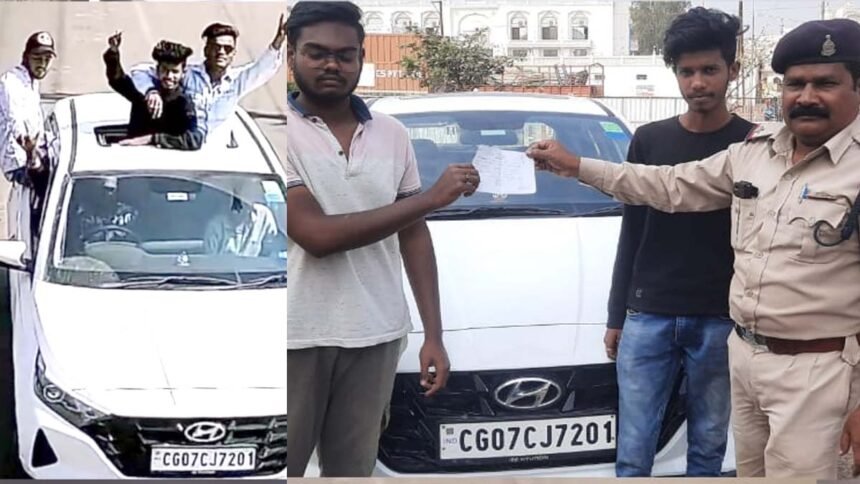 भिलाई। दुर्ग जिले में इन दिनों कार व बाइक पर स्टंटबाजी करने वालों पर पुलिस काफी सख्त हो गई है। सड़क पर तो कार्रवाई आम है लेकिन दुर्ग की यातायात पुलिस सोशल मीडिया के जरिए मिल रही शिकायतों पर भी गंभीर है। लगातार ऐसे मामलों में कार्रवाई की जा रही है। इसी कड़ी में सोमवार को एक कार चालक युवक पर कार्रवाई की गई। कार सवार युवक कार की सनरूप से बाहर निकलकर लापरवाही पूर्वक कार चला रहे थे।