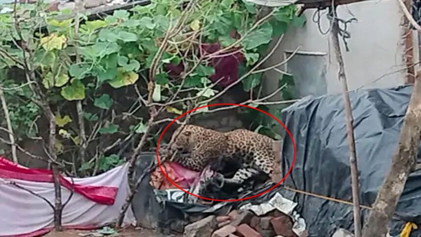 कांकेर। छत्तीसगढ़ के कांकेर जिले में हैरान कर देने वाला मामला सामने आया है। मंगलवार को जिले के सिंगारभाट गांव में एक तेंदुए की मौत से वन विभाग में हड़कंप मच गया। दरअसल शिकार की तलाश में तेंदुआ बस्ती में आ गया और एक मुर्गे को पकड़ने के लिए उसे बाड़े में घुस गया। इस दौरान वह कंटीले तारों में फंस गया। काफी प्रयास के बाद भी वह निकल नहीं पाया और दम घुटने से उसकी मौत हो गई। ग्रामीणों की सूचना पर वन विभाग के अधिकारी मौके पर पहुंचे और तेंदुए के शव को वाहर निकाला। फिलहाल वन विभाग की टीम मामले की जांच में जुट गई है।