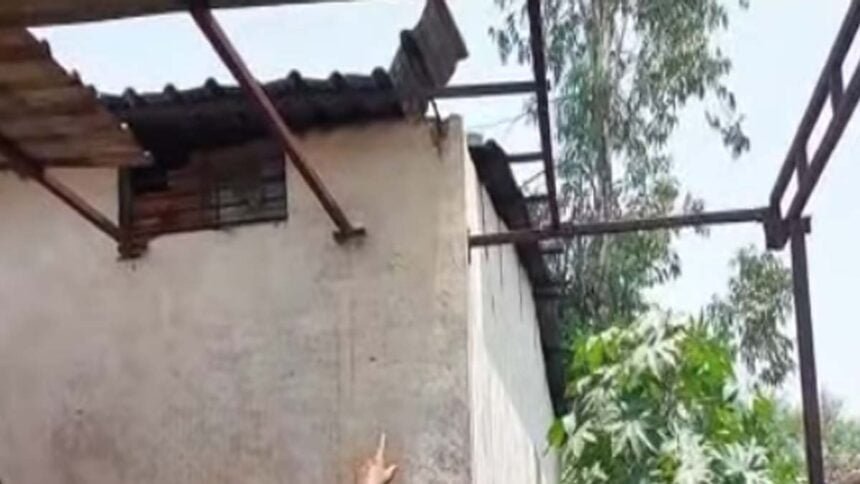 चोरों ने इस तरह टीन की शेड को उखाड़कर चोरी की घटना को अंजाम दिया।