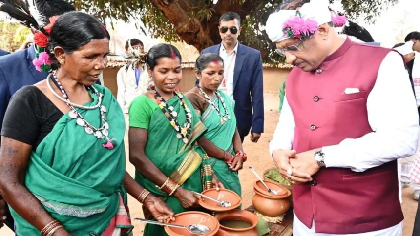 रायपुर। मुख्यमंत्री विष्णुदेव साय ने अपने दो दिवसीय नारायणपुर प्रवास के दौरान आज ‘गढ़बेंगाल घोटुल‘ पहुंचकर बस्तर की गौरवशाली परंपराओं और लोक-संस्कृति के प्रति अपनी गहरी प्रतिबद्धता प्रदर्शित की। इस मौके पर पारंपरिक वाद्ययंत्रों की मधुर ध्वनि और ग्रामीणों के आत्मीय स्वागत के बीच मुख्यमंत्री साय स्वयं लोक-रंग में रंगे नजर आए।