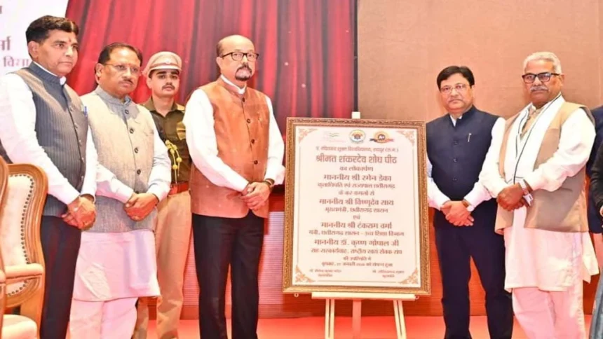 रायपुर। राज्यपाल रमेन डेका की पहल पर पंडित रविशंकर शुक्ल विश्वविद्यालय में स्थापित महान संत, समाज सुधारक और सांस्कृतिक चेतना के प्रणेता श्रीमंत शंकरदेव के विचारों, दर्शन और साहित्य को समर्पित शोध संस्थान का भव्य लोकार्पण रविवार गरिमामय समारोह में सम्पन्न हुआ। इस अवसर पर कार्यक्रम की अध्यक्षता राज्यपाल रमेन डेका ने की। मुख्यमंत्री श्री विष्णु देव साय, उच्च शिक्षा मंत्री टंकराम वर्मा, डॉ. कृष्ण गोपाल जी सह-सरकार्यवाह, राष्ट्रीय स्वयं सेवक संघ सहित शिक्षा जगत के विद्वान, शोधार्थी, युवा वर्ग तथा गणमान्य नागरिक बड़ी संख्या में उपस्थित रहे। इसके साथ ही पंजाब विश्वविद्यालय, चंडीगढ़ तथा पं. रविशंकर शुक्ल विश्वविद्यालय रायपुर के मध्य एम.ओ.यू. पर भी हस्ताक्षर किया गया। एमओयू के पश्चात दोनों ही विश्वविद्यालय के शोधार्थी एक-दूसरे विश्वविद्यालय में अंतरविषयक अनुसंधान कर सकेंगे।