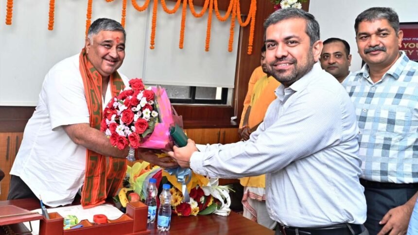 रायपुर। पर्यटन, संस्कृति, धार्मिक न्यास एवं धर्मस्व मंत्री राजेश अग्रवाल ने आज मंत्रालय महानदी भवन स्थित कार्यालय मे विधिवत पूजा अर्चना कर कामकाज की शुरूआत की। इस अवसर पर राजस्व मंत्री श्री टंकराम वर्मा, खाद्य मंत्री दयाल दास बघेल, विधायक अनुज शर्मा, संपत अग्रवाल, प्रबोध मिंज, उद्धेश्वरी पैंकरा, छत्तीसगढ़ गृह निर्माण मण्डल के अध्यक्ष अनुराग सिंह देव, छत्तीसगढ़ भवन एवं अन्य संनिर्माण मंडल के अध्यक्ष श्री रामप्रताप सिंह, छत्तीसगढ़ संस्कृति परिषद के अध्यक्ष शशांक शर्मा एवं पवन साय और वरिष्ठ अधिकारियों ने उन्हें पुष्प गुच्छ भेंट कर बधाई और शुभकामनाएं दी।