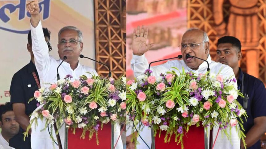 खड़गे ने कहा कि पीएम मोदी को छत्तीसगढ़ में आकर देखना चाहिए। सिर्फ भाषण करके चले जाते हैं। नरेंद्र मोदी किसी को बोलने का चांस तक नहीं देते । पहले और भाइयों और बहनों बोलते थे, अब परिवारजनों बोल रहे हैं। यह नया स्लोगन शुरू हुआ है। छत्तीसगढ़ में जेपी नड्डा और अमित शाह भी आ रहे हैं। चुनाव के पहले झांकते तक नहीं थे। नीति आयोग की रिपोर्ट के मुताबिक, 5 सालों में छत्तीसगढ़ में 40 लाख लोग गरीबी रेखा से बाहर आए हैं। केंद्र सरकार पूछती है कि कांग्रेस ने क्या किया तो हम ये रिपोर्ट दे रहे हैं।
