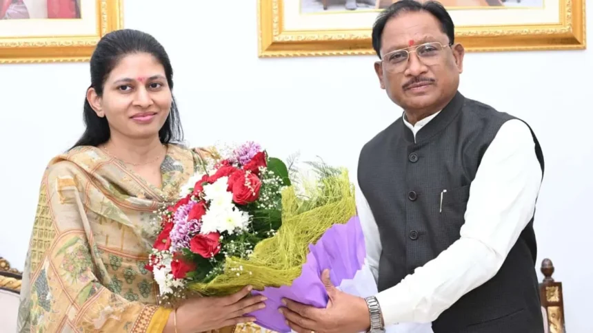 रायपुर। मुख्यमंत्री विष्णु देव साय से आज उनके निवास कार्यालय में केंद्रीय खेल एवं युवा कल्याण राज्य मंत्री रक्षा निखिल खडसे ने सौजन्य भेंट की। इस अवसर पर विधायक पुरन्दर मिश्रा, भारतीय खेल प्राधिकरण के उप महानिदेशक मयंक श्रीवास्तव एवं खेल विभाग के सचिव यशवंत कुमार उपस्थित रहे। मुख्यमंत्री ने खडसे का शॉल, बस्तर आर्ट से निर्मित आकर्षक प्रतिकृति तथा बस्तर दशहरा पर आधारित कॉफी टेबल बुक भेंट कर आत्मीय स्वागत एवं अभिनंदन किया।